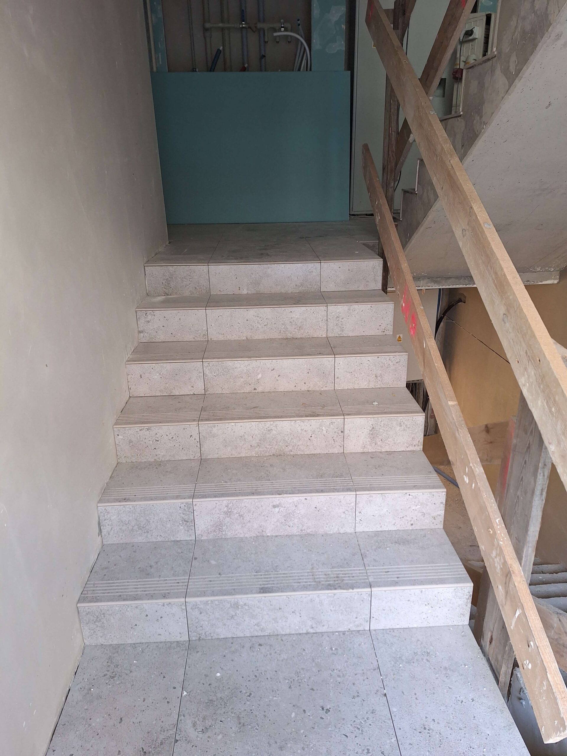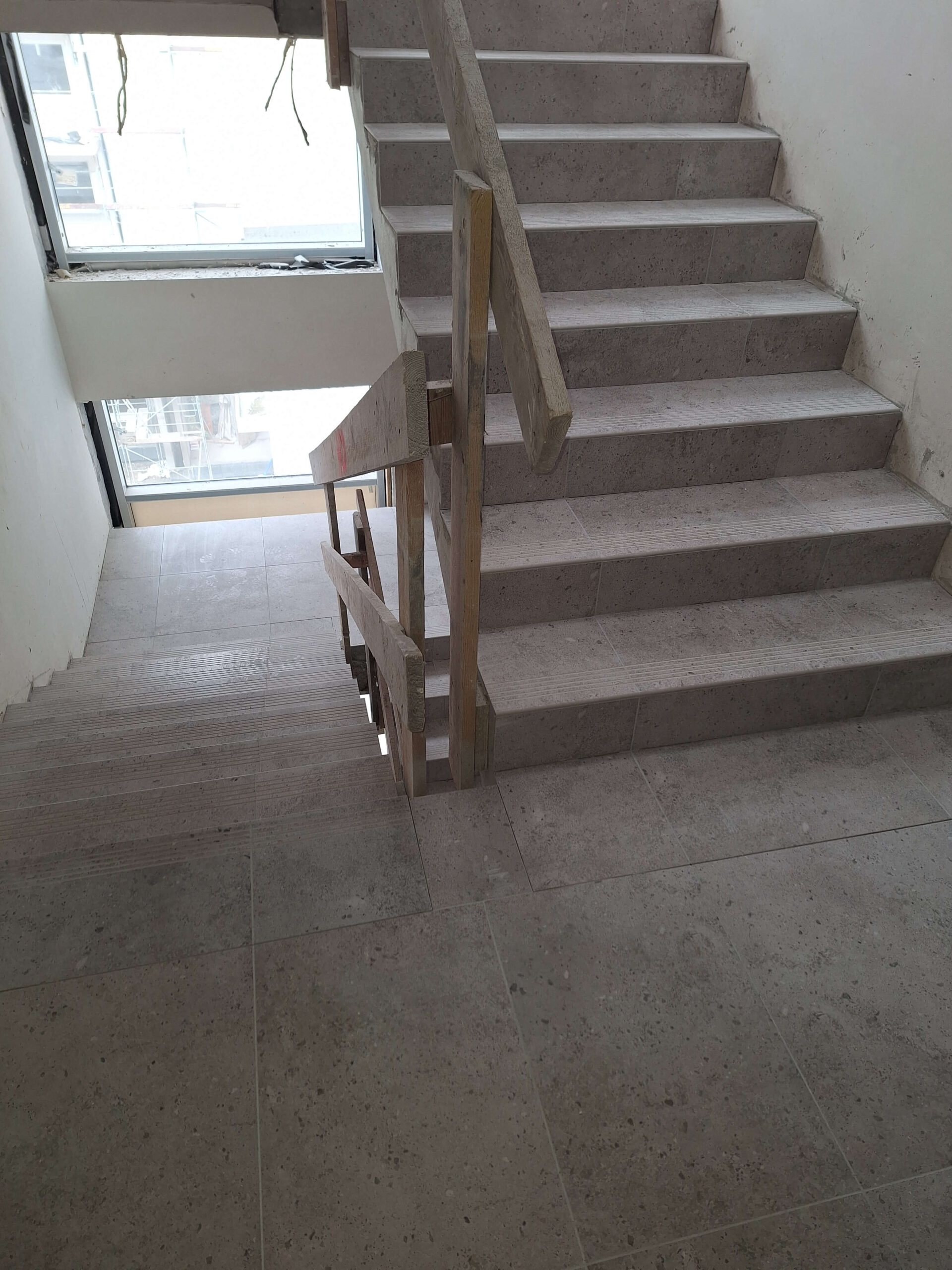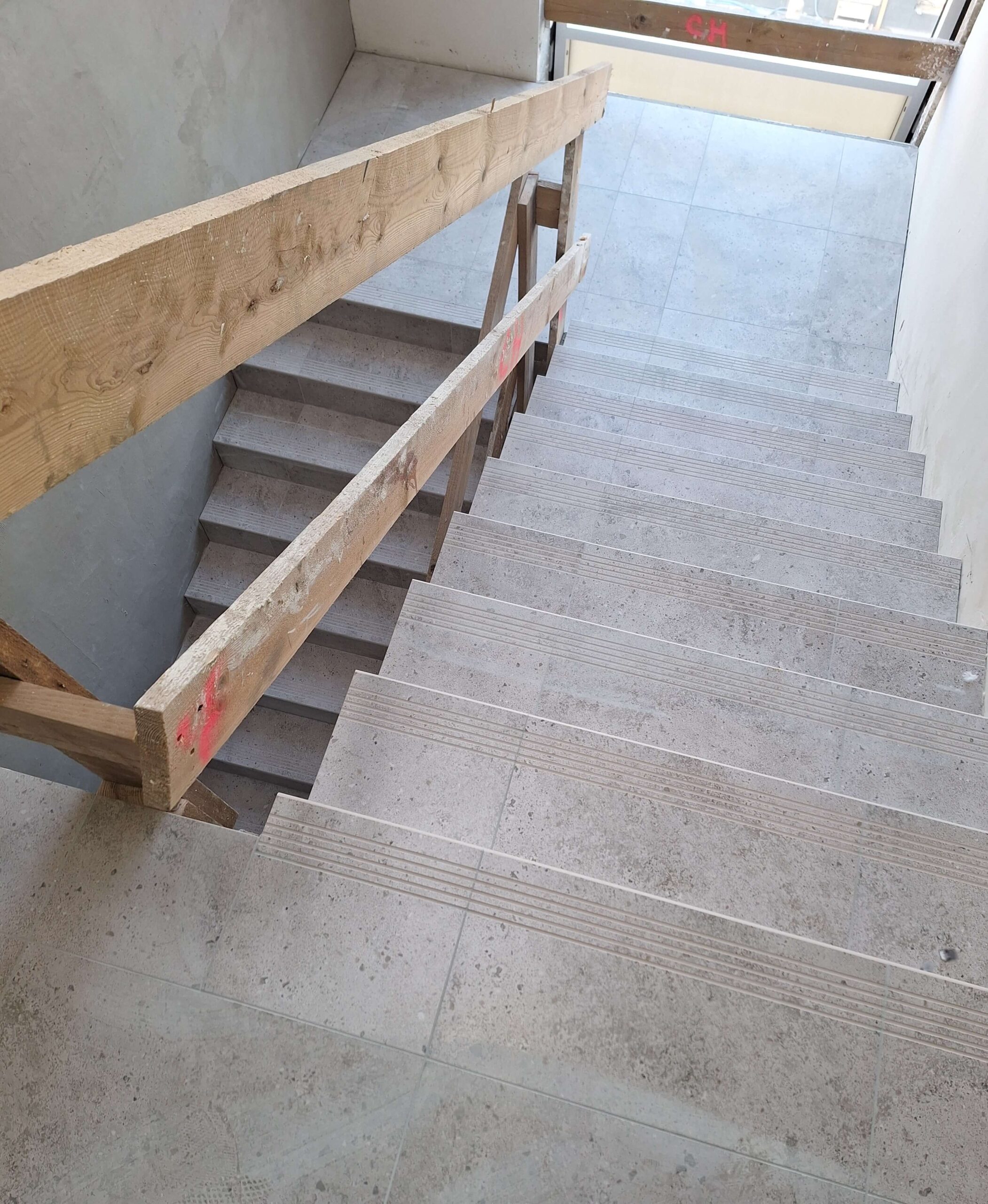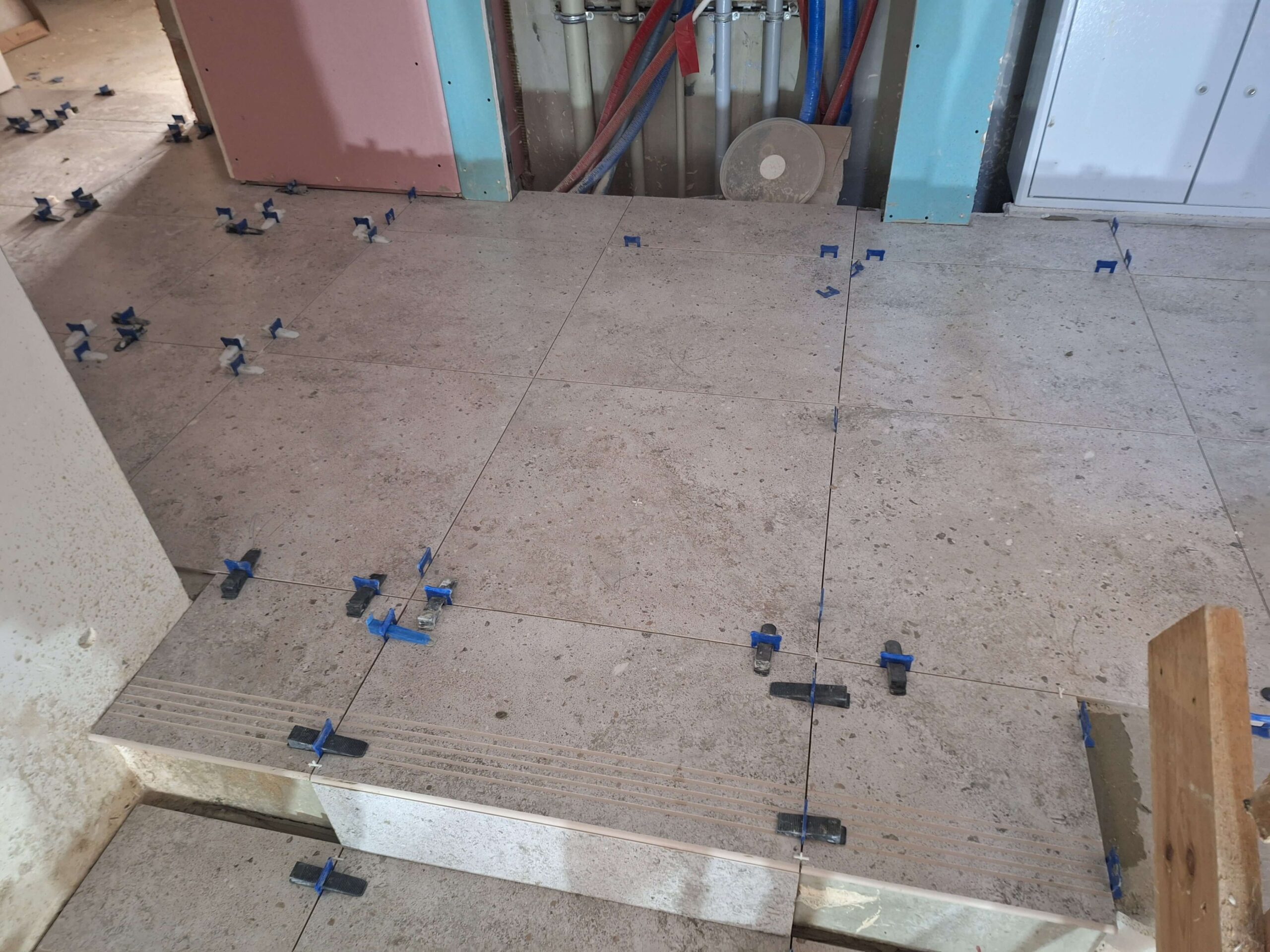 – Trwa układanie płytek na częściach wspólnych w budynku A1. W klatce A1.1 wykonano od +5 do +2, A1.2 +5 do 0, A1.3 +5 do +1.