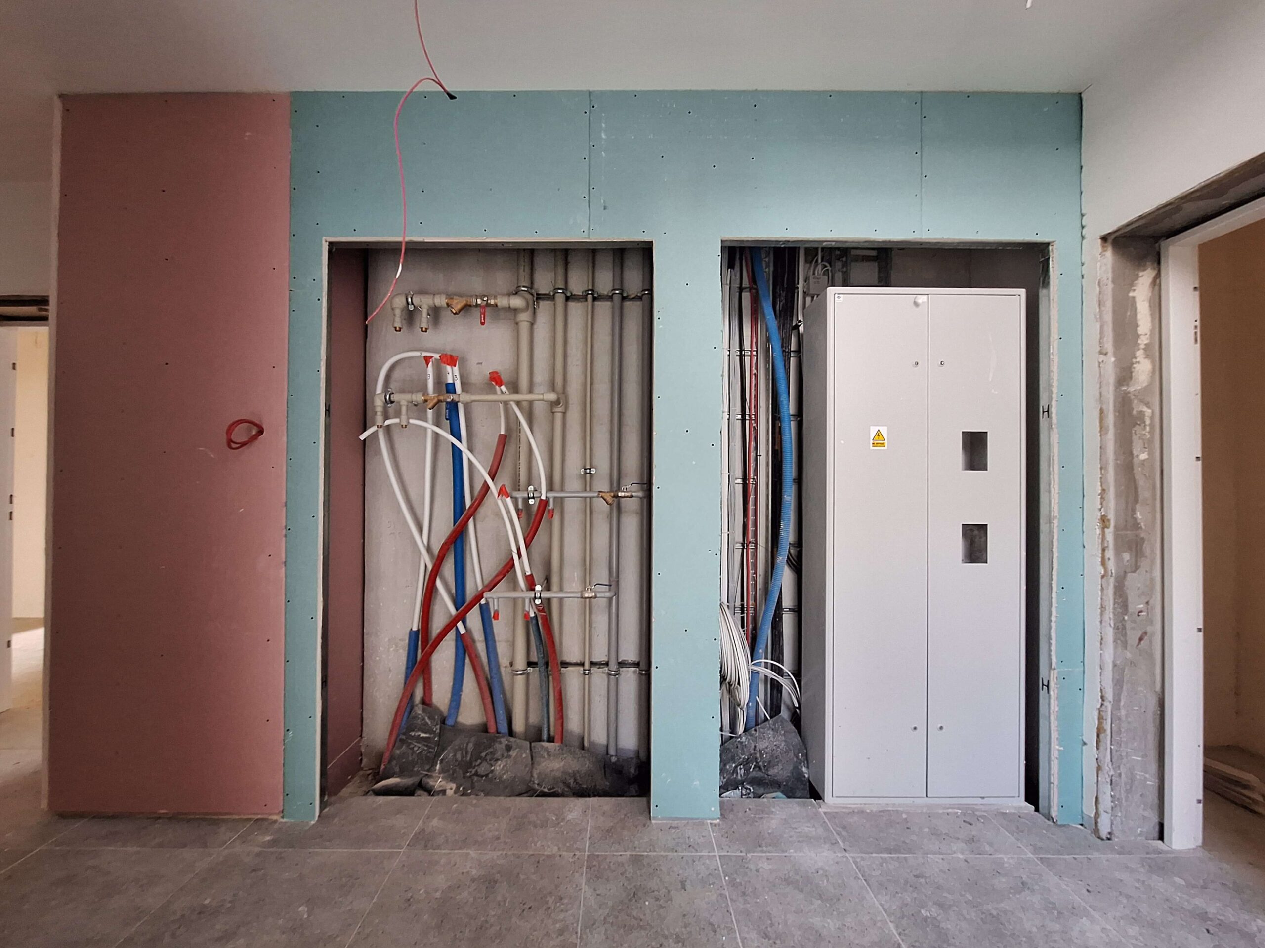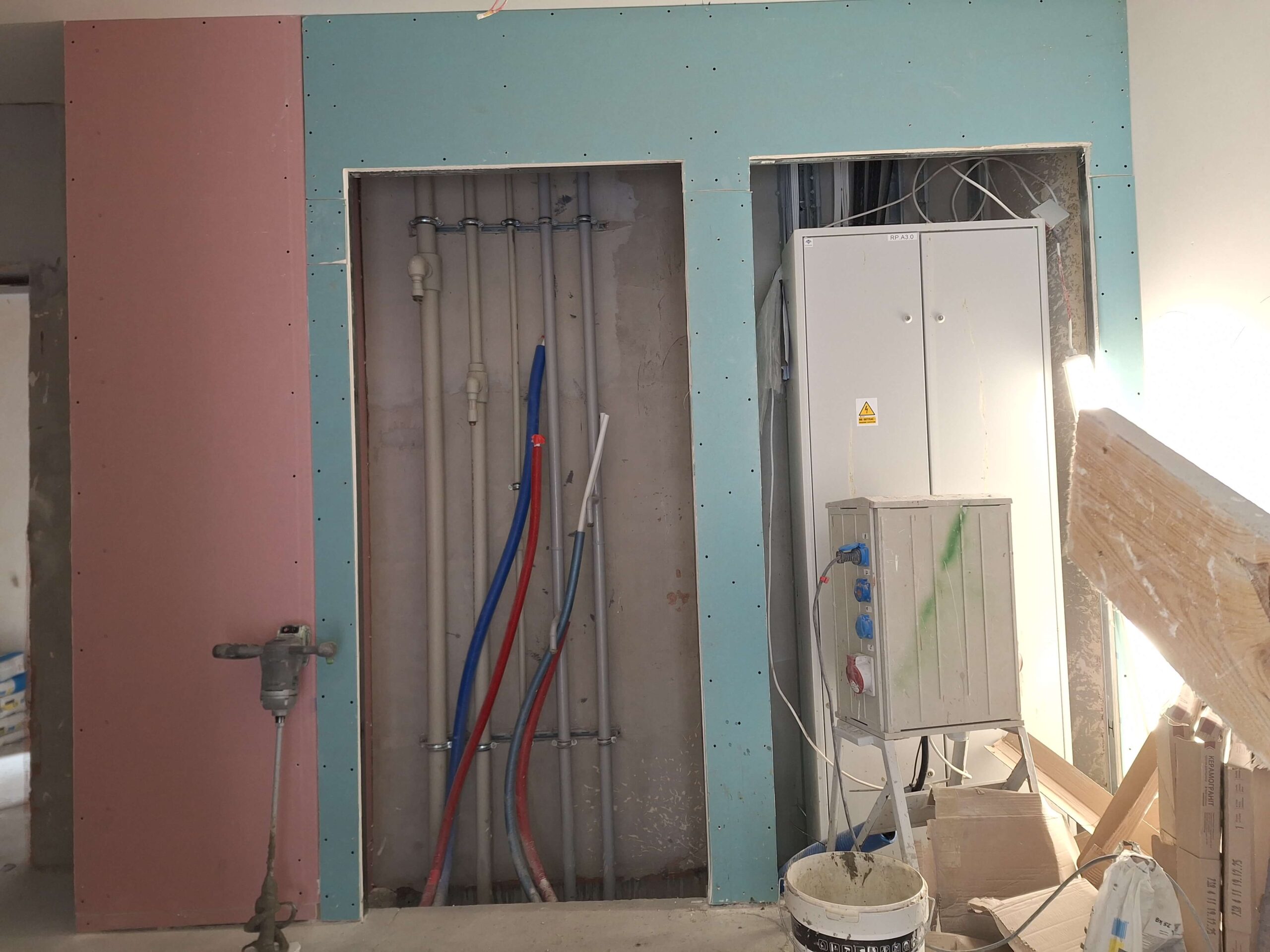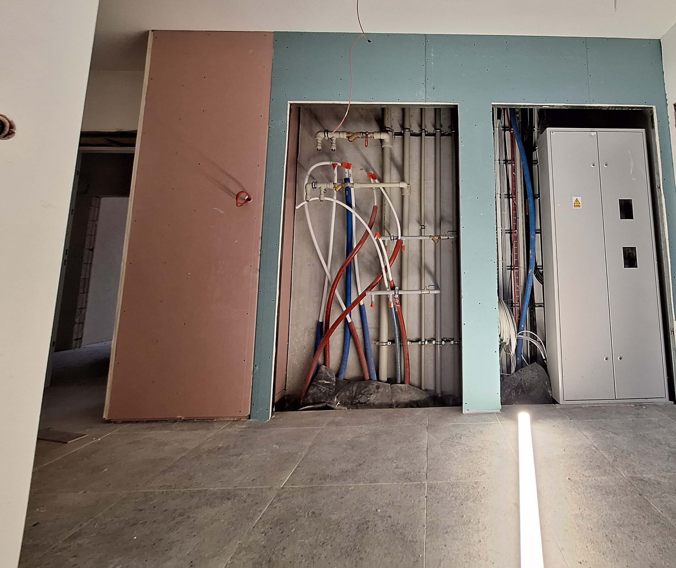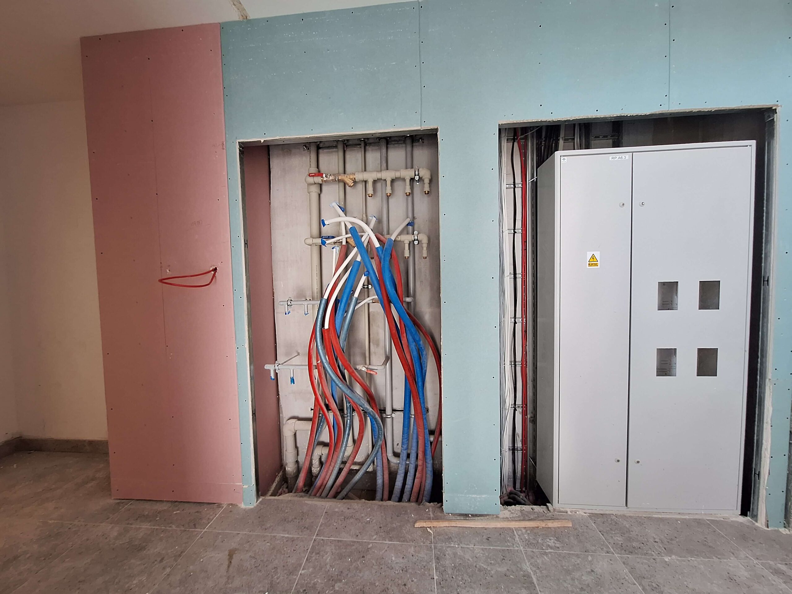 – Instalacje sanitarne podposadzkowe w mieszkaniach w zakresie 0p, 1p kl. D2.2 – w trakcie